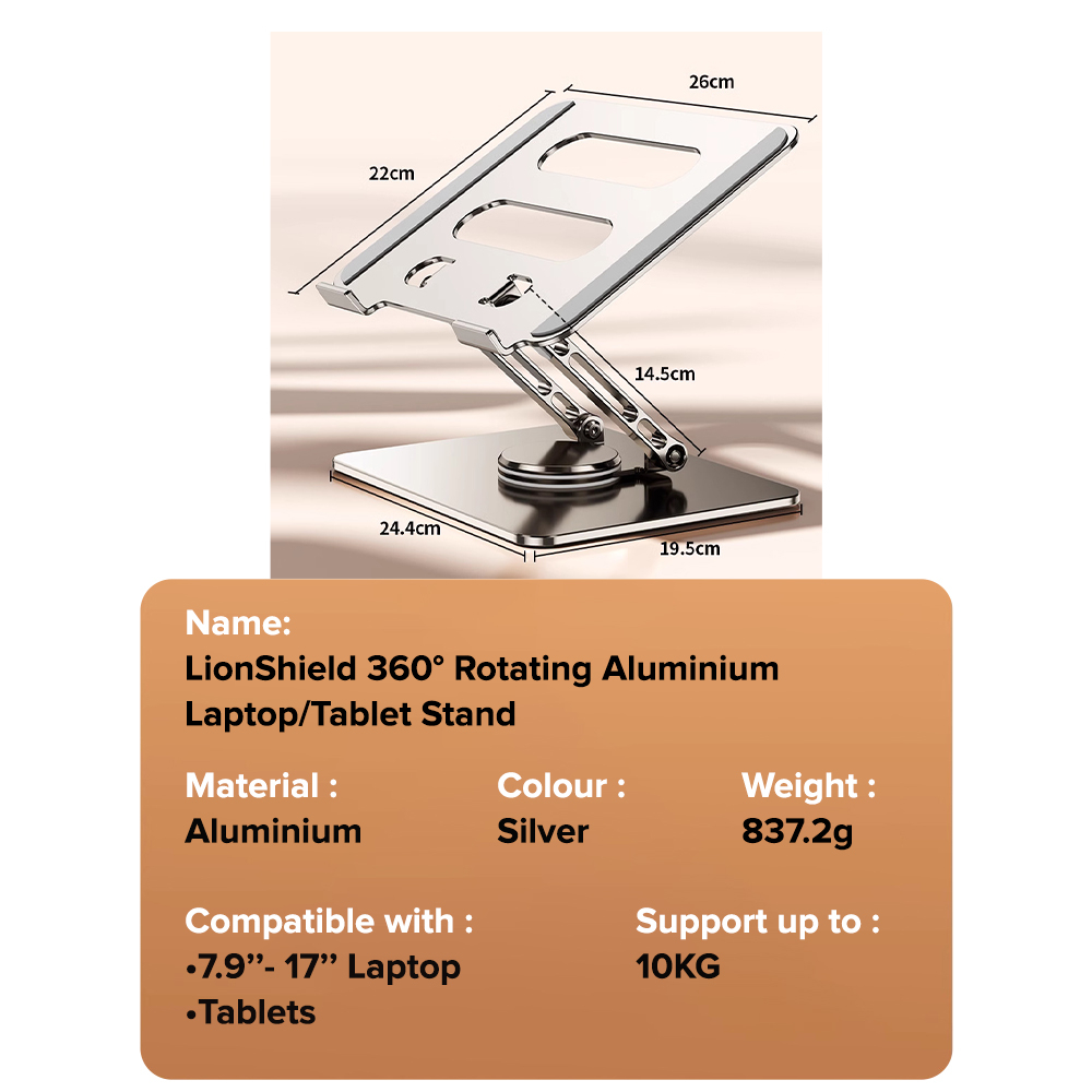 (SG) LionShield 360° Rotating Aluminium Laptop Stand / Tablet Stand - Multi Angle Height Adjustable and Foldable Stand