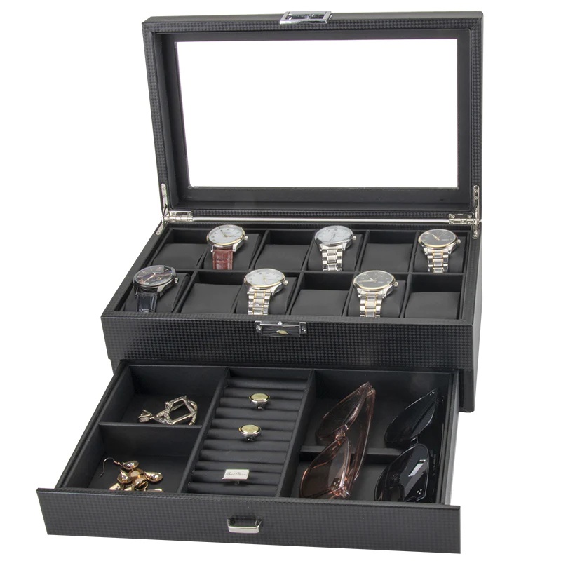 6 Slots Glass Top PVC Watch Box Storage Case Watch Box Jewelry Case Display Box Watch Case Watch Box