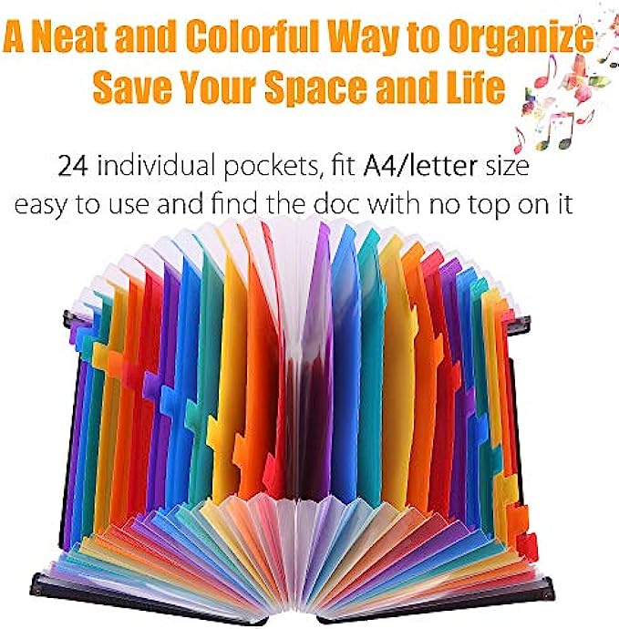 • Large 24 Pockets File Folders: TriMigic file box will give you plenty of room to grow and add more things as needed, because this accordian file organizer has 24 individual pockets that fit A4 & letter size, and each pocket can expand across the bottom and top, the accordion file organizer can hold up to about 3500 sheets