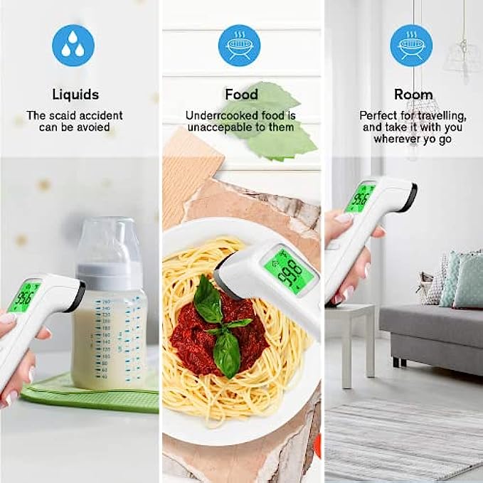 • Multi-mode Thermometer: The digital thermometer is designed for all ages, adults, infants, and elders. It not only supports the forehead function but is able to take room/object temperature.